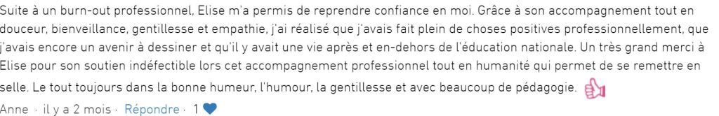 Témoignages Vous souhaitez témoigner sur l’accompagnement dont vous avez bénéficié ? Rendez-vous sur la rubrique « avis » de Google 🙂 Partager : Cliquer pour partager sur X(ouvre dans une nouvelle fenêtre) X Cliquez pour partager sur Facebook(ouvre dans une nouvelle fenêtre) Facebook J’aime chargement…